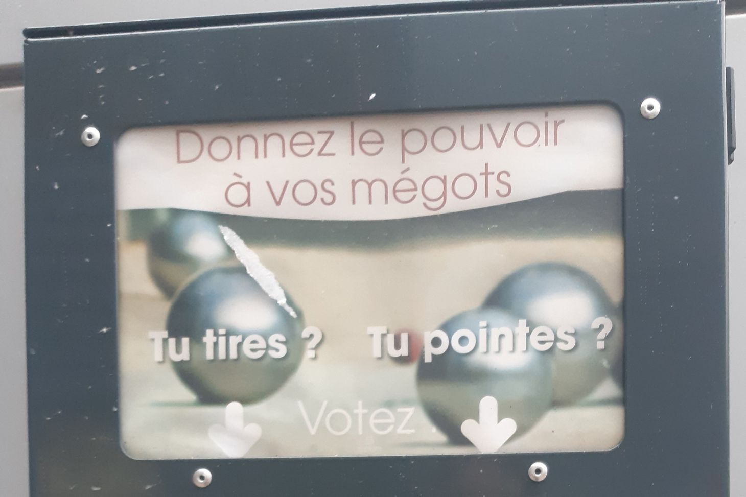Ce dispositif prend la forme d'une boite interactive où chacun peut "voter" avec son mégot en répondant à une question